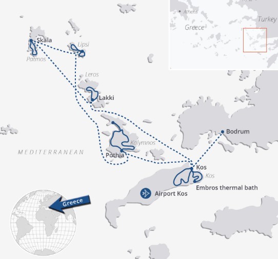 Gipfelstürmer und Badenixen kommen gleichermaßen auf ihre Kosten. Per Bike erkunden Sie die liebenswerten Eilande Kos, Kalymnos, Leros, Lipsi und Patmos und sind dabei auf vielen Naturwegen unterwegs. Nach den Touren ankert Ihr Schiff in idyllischen Badebuchten und Sie springen direkt vom Schiff in das erfrischende Nass. Abends spazieren Sie durch idyllische Hafenorte oder chillen in urigen Bars mit einem Sundowner in der Hand.