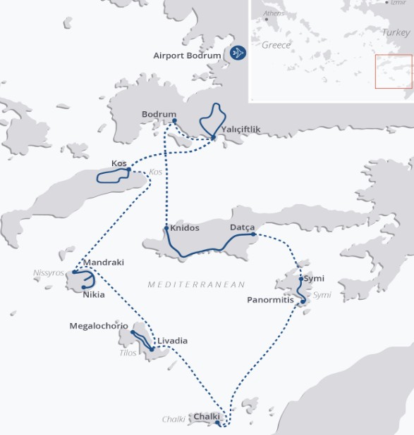 Unsere Reise in die Griechische Ägäis Süd startet ab Bodrum/Türkei. Um Probleme bei den Zollformalitäten, die für die Ein- und Ausreise von der Türkei nach Griechenland bzw. umgekehrt erforderlich sind, zu vermeiden, bitten wir darum, dass alle Mitreisenden die erforderlichen Reisedokumente und Visa bereits VOR Reiseantritt bei der zuständigen Botschaft ihres Heimatlandes beschaffen.