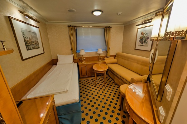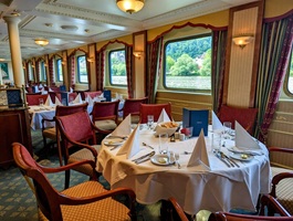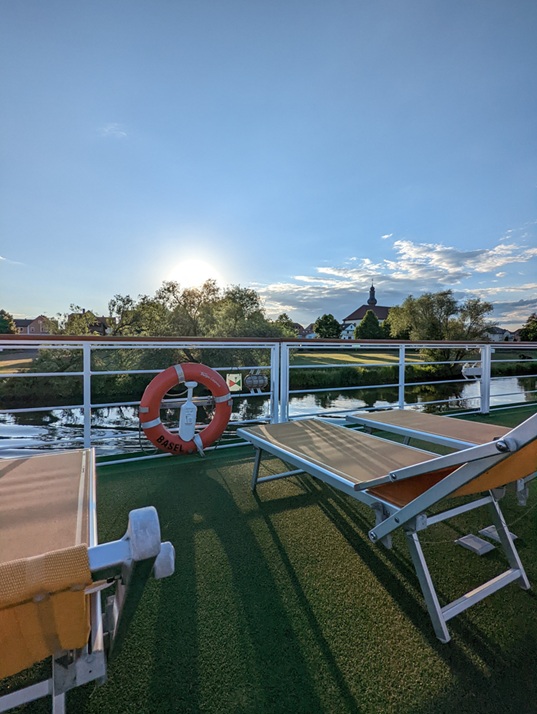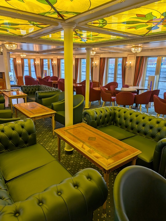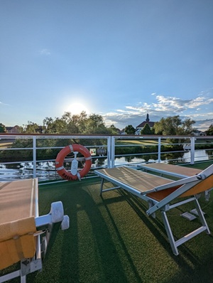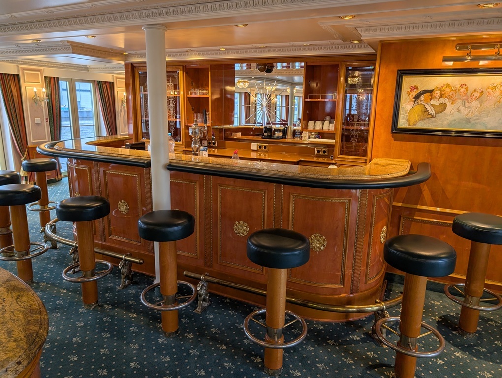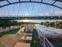 Dieses charmante Flussschiff empfängt Sie in einem eleganten Ambiente, das an den Rokoko-Stil erinnert – mit verspielten Details, liebevoll ausgewählten Dekorationen und Reproduktionen bekannter Gemälde. Eine Atmosphäre wie in einem kleinen Schloss auf dem Wasser.Der schlossähnliche Panorama-Salon mit gemütlicher Bar lädt zum Verweilen ein – ob bei einem Glas Wein oder einem Cocktail. Im stilvoll eingerichteten Restaurant verwöhnt Sie die Küchencrew mit abwechslungsreichen Menüs. Das großzügige Sonnendeck mit Liegestühlen und Sitzbereichen, teilweise überdacht, bietet ideale Bedingungen für entspannte Stunden an der frischen Luft.Hinweis: Die Treppe zum Sonnendeck ist sehr steil.