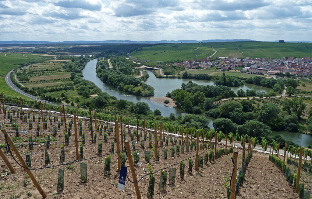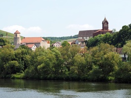 Über Schwarzach am Main radeln Sie zunächst nach Volkach (hier haben Sie die Möglichkeit, das Schiff zu verlassen und die Radtour zu verkürzen). Hier lohnt ein Besuch der Wallfahrtskirche St. Maria im Weingarten. Weiter geht es nach Fahr, wo Sie ein Willkommensschild in Form eines Bocksbeutels begrüßt, über die Volkacher Mainschleife – hier wird das Tal immer enger und die Weingärten immer zahlreicher – nach Schweinfurt.