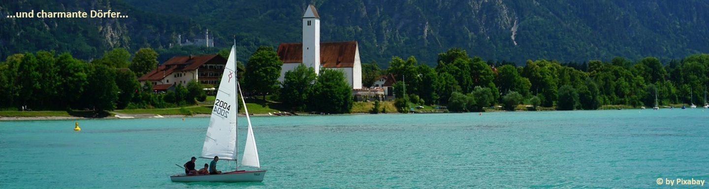 Vorbei am Rottach- und Grüntensee bevor Sie dem höchsten Punkt der Radtour Allgäu im österreichischen Tannheimer Tal entgegen radeln. stets leicht bergab zum schönen Hopfensee. Das Städtchen Füssen am grünen Lech verströmt mit pastellfarbenen Bürgerhäusern ein fast südländisches Flair. In der Umgebung warten tolle Badeseen und die weltberühmten Königsschlösser Neuschwanstein und Hohenschwangau.