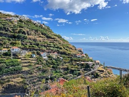Ein langer, steiler Anstieg wird heute Morgen wieder mit dem Bus überbrückt. In Santana beginnt Ihre Radtour. Vorher sollten Sie aber noch unbedingt das Wahrzeichen Madeiras besichtigen. Die traditionellen, strohbedeckten Bauernhäuschen sind hier besonders liebevoll restauriert worden. Die Radstrecke führt auf einer herrlichen Landstraße durch kleine, charmante Dörfer immer entlang der Ostküste bis São Vicente. Der Ort, benannt nach dem heiligen Vinzenz, liegt direkt am Meer, ist aber auch bekannt wegen seiner 400.000 Jahre alten Grotten.