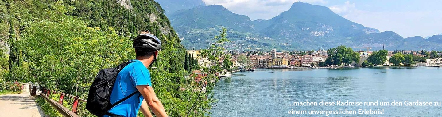 Bis der schon seit langem geplante Radweg rund um den Gardasee fertiggestellt ist, wird es wohl noch einige Jahre dauern. Mit uns können Sie sich den Traum, einmal um den gesamten Gardasee zu radeln, aber bereits jetzt erfüllen. Während Sie den von blühenden Oleanderbüschen gesäumten Uferpromenaden folgen, können Sie den Blick über die weite, glitzernde Wasseroberfläche schweifen lassen, und die weniger bekannten, aber mitnichten weniger bezaubernden kleinen Geschwister des Gardasees (Ledrosee und Idrosee) werden mit ihrer unberührten Schönheit bestimmt auch Ihr Herz höher schlagen lassen. Beeindruckend sind die Aussichten in den Tälern. So führen Sie herrlich angelegte Radwege durch das fruchtbare Etschtal, das panoramareiche Sarcatal und das romantische Val Sabbia. Neben beeindruckender Landschaft hat die Region am Gardasee auch herausragende Kulinarik zu bieten. Probieren Sie bestes Olivenöl, hervorragende Weine, reife Zitrusfrüchte und köstlichen Fisch aus dem Gardasee auf jeder Tagesetappe Ihrer Reise. Worauf also noch warten, es ist angerichtet für Sie!