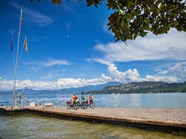 Sanft hügelig radeln Sie durch das Weinanbaugebiet des Lugana bis an das Ufer des Mincio. Dieser Fluss bringt Sie zu der historischen Festungsanlage von Peschiera und wieder zurück an den Gardasee. Für einige Kilometer verläuft der Radweg direkt am Seeufer und führt Sie später etwas ins Hinterland. Durch Apfelgärten und die Weinreben des Bardolino geht’s wieder zurück ans Ufer, dem Sie unter schattenspendenden Pinien bis in den charmanten Seeort Garda folgen.